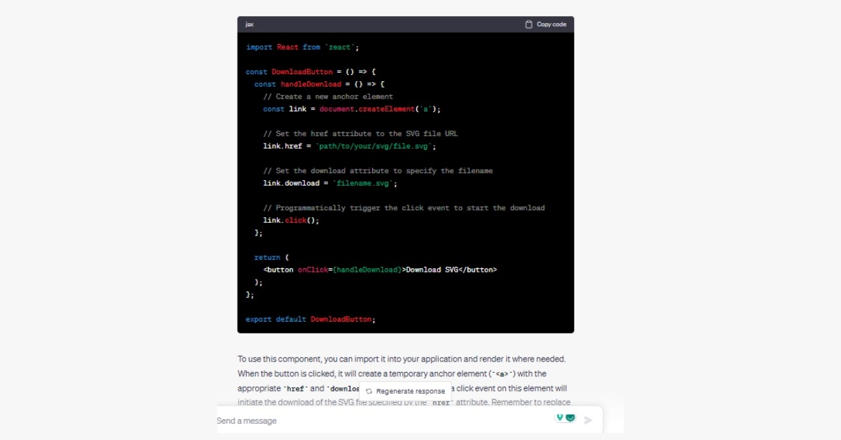 Prompt: Write a react function, a button that downloads the SVG when you click it.