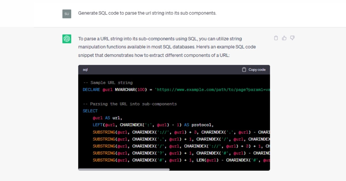 Prompt: Generate SQL code to parse the URL string into its sub-components.